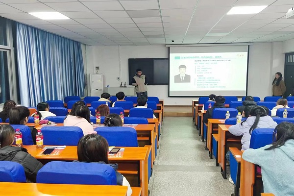会上,柴帅杰首先分享了自己毕业后在今麦郎的工作经历,强调毕业生在求职道路上应树立正确的职业价值观,着重考虑职业对自我发展的影响与作用。之后,柴帅杰回顾了自己的在校经历,鼓励同学们在校期间要不断积累知识、锻炼技能,提高自身的综合能力。同时他介绍了今麦郎有限公司的基本发展情况,进一步加深了同学们对企业的认识。最后,柴帅杰与现场同学进行了热烈的交流,以自己的实际经历为同学们在求职规划、就业发展方向选择等方面提出建议,也为同学们提供了宝贵的经验。