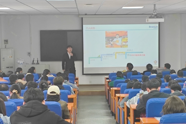交流中,周国洪首先介绍了自己在校期间的学习情况以及毕业后的工作经历,以此告诫同学们要珍惜四年大学时光,做好职业生涯规划,寻找动力,做一个有理想、有目标、有担当的人。之后,周国洪向同学们分享自己毕业求职时的一些经验和心得体会,希望同学们能利用在校时间努力提升自己的专业素养,提高自身综合能力;抓住春招黄金期,早日找到适合自己的岗位。最后,周国洪与现场的同学展开热烈交流。