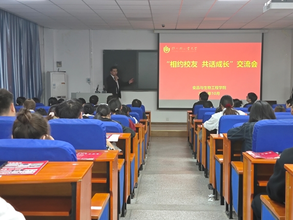为充分发挥榜样力量,积极传递优秀校友的榜样引领作用,为学生提供与优秀校友“零距离”学习交流的机会和平台,10月14日,食品与生物工程学院在食工楼209举办“相约校友 共话成长”交流会。学院优秀校友、牧原食品股份有限公司郭朋磊应邀参加。学院2025届毕业生、低年级学生代表参加了交流会。