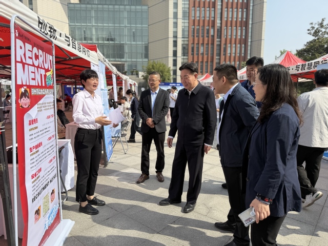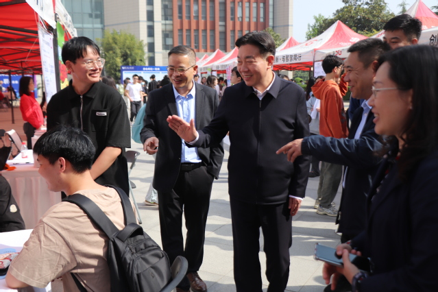 张志坚在走访调研中,与用人单位招聘人员、参会校友企业代表进行了深入沟通交流。他对用人单位到校招聘表示了感谢,并详细了解了企业招聘需求、岗位设置及毕业生简历投递情况,认真听取了用人单位对学校人才培养、学科专业建设的建议,鼓励校友企业持续发挥行业纽带作用,深化校企协同育人。