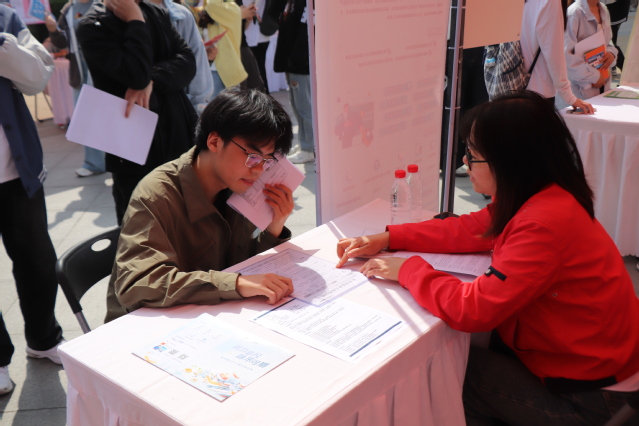 为进一步满足毕业生就业需求,双选会现场还专门设置了参军入伍政策宣讲服务台,武装部老师和学校戎光先锋团成员现场为有意向参军的毕业生发放入伍明白卡,进行政策宣讲和咨询服务。