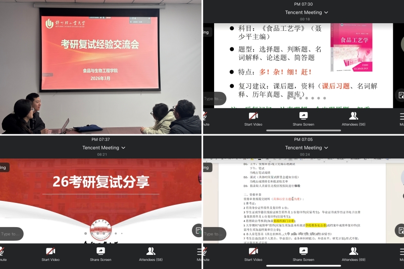 为精准护航2026届毕业生考研复试备考,增强考研学生复试竞争力,3月10日,食品与生物工程学院举办2026届考研复试经验交流会,百余名学生通过线上线下相结合的方式参与交流。会议由学院就业专职辅导员王兆博主持。