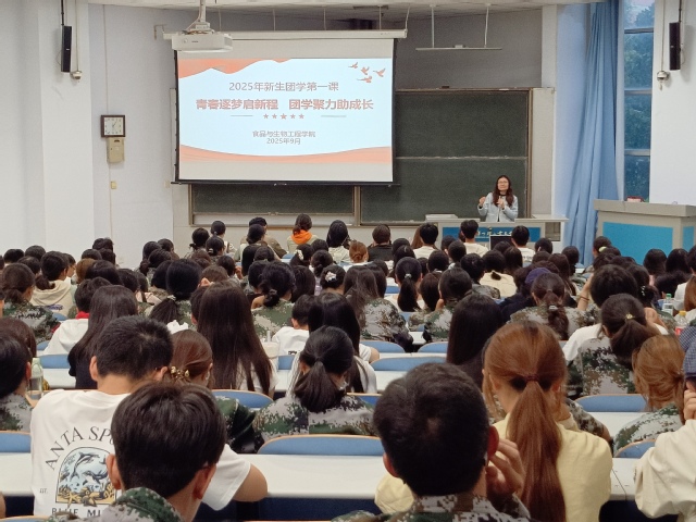 为加强大一新生对学院团学工作的了解,帮助大家尽快适应大学环境,科学制定四年学习生活规划,近日,食品与生物工程学院在东风校区教三楼202教室开展新生团学第一课活动。学院团委书记李燕主讲,2025级全体本科生参加此次活动。