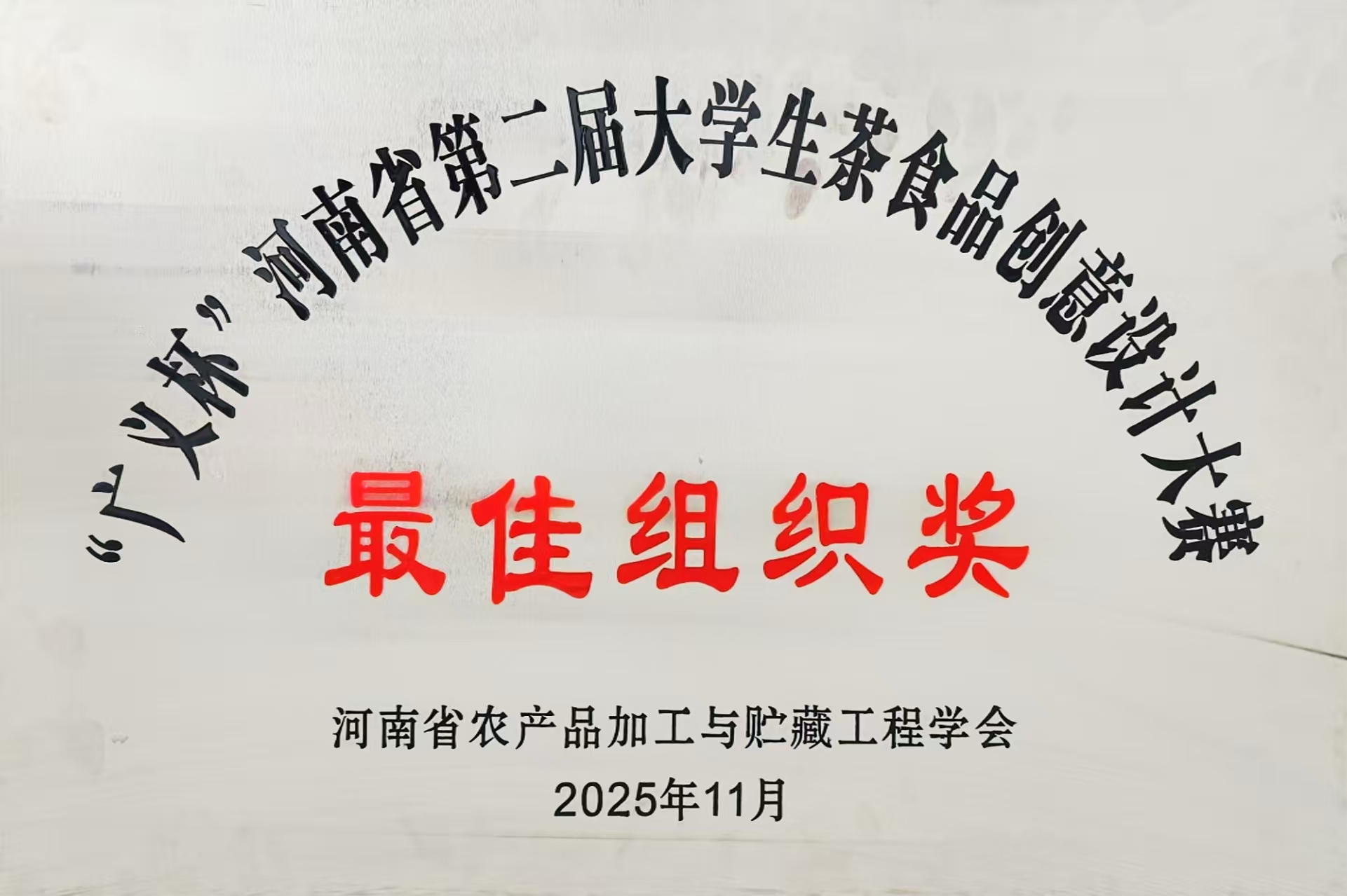 11月6日,由河南省农产品加工与贮藏工程学会主办,信阳农林学院、信阳师范大学、河南省大别山特色食物资源综合利用工程技术研究中心联合承办,省内外40多所高校参加的“广义杯”河南省第二届大学生茶食品创意设计大赛圆满落幕。学校作为重要参与单位,在此次大赛中表现卓越,荣膺“最佳组织奖”。同时,学校冀晓龙副教授带领20支参赛队伍参加复赛,经专家现场评审,“雪沫浮茶香-乳花映水扇”、“墨韵山水”和“三叠泉-茶立方”等5项参赛作品进入决赛。最终,“雪沫浮茶香-乳花映水扇”1项作品获特等奖,“三叠泉-茶立方”等4项作品获一等奖,“春兰露香•茶韵酥”等3项作品获二等奖,“轻氧抹茶空气炸面包”等4项作品获三等奖,“信阳毛尖桂花酒酿茶糕”等8项作品获优秀奖。本次大赛学校成果丰富,是学校长期以来坚持“以赛促学、以赛促教、以赛促创”育人理念的生动体现,也是学校学子卓越的创新实践能力和团队协作精神的有力展现。